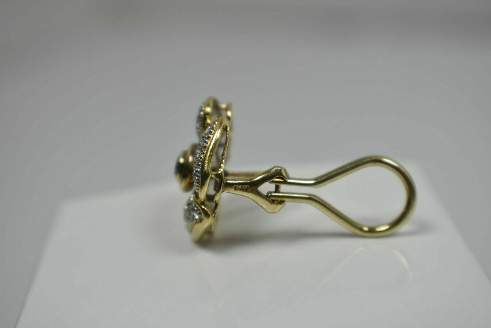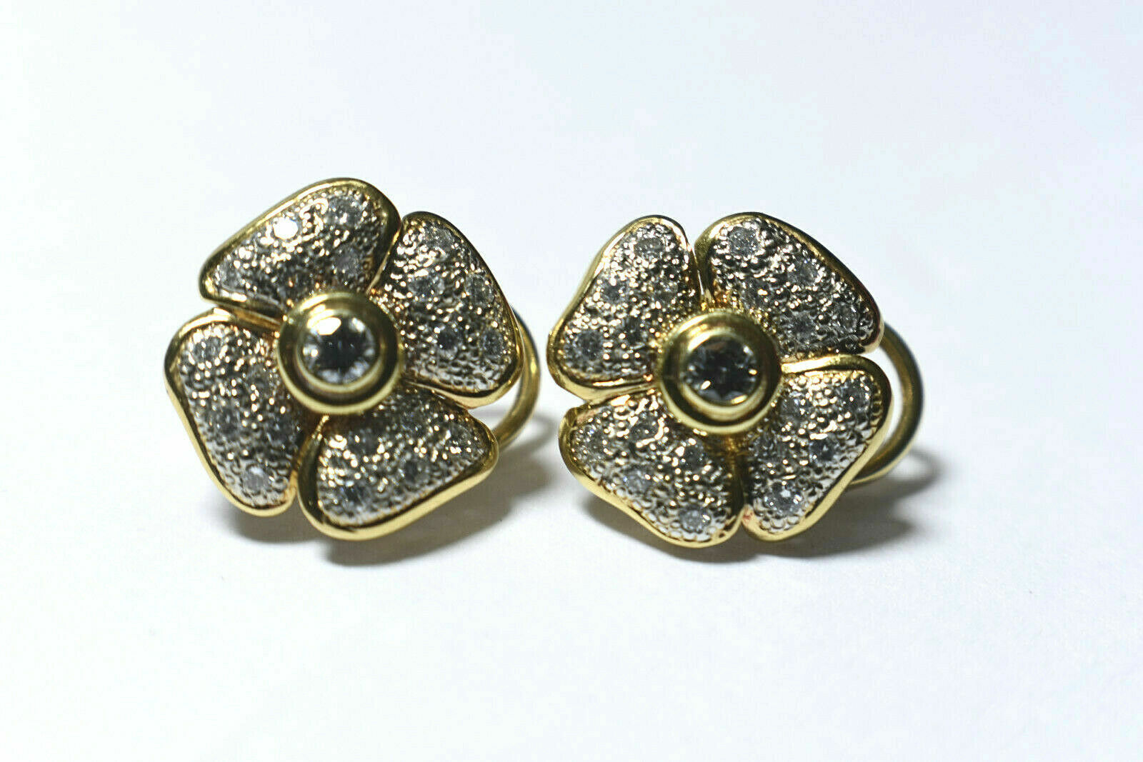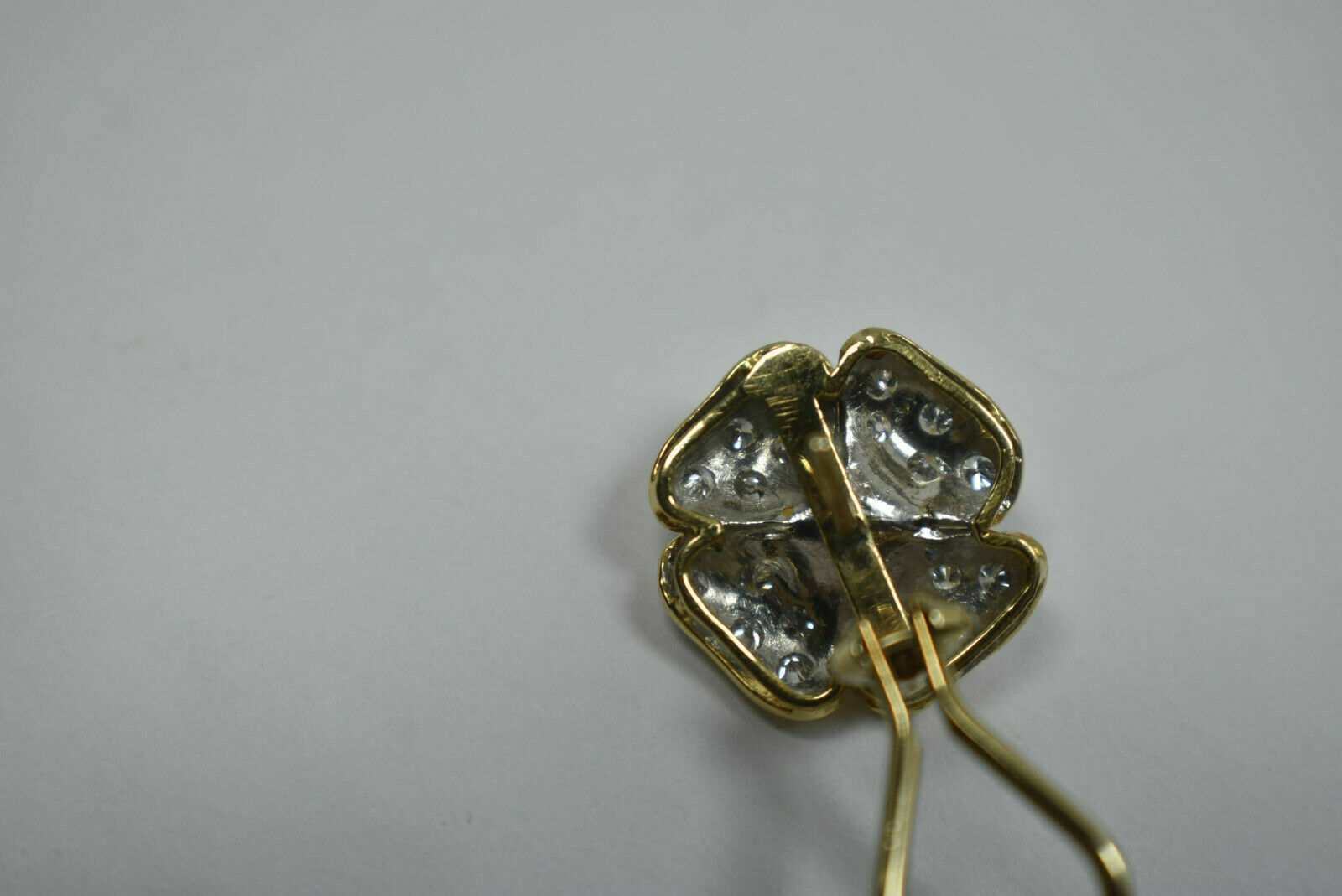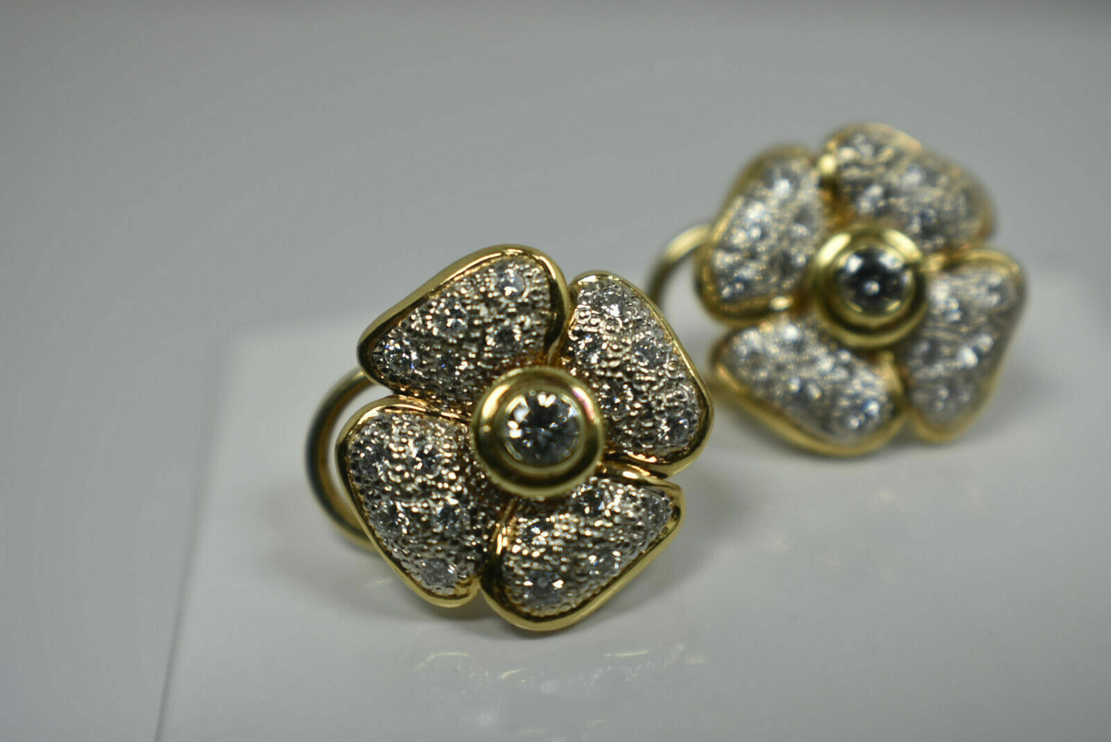1ct Diamond 14K 2-Tone Gold 4 Leaf Clover Designer Flower Earrings 9 Gram FG VS1