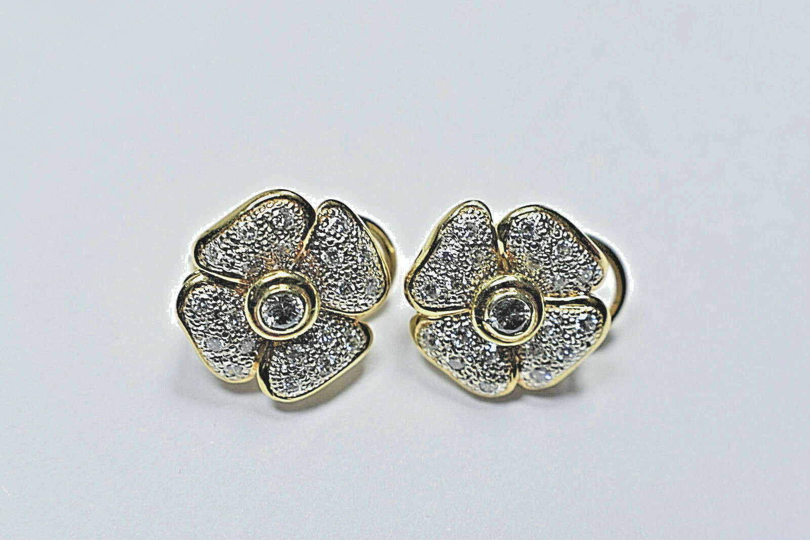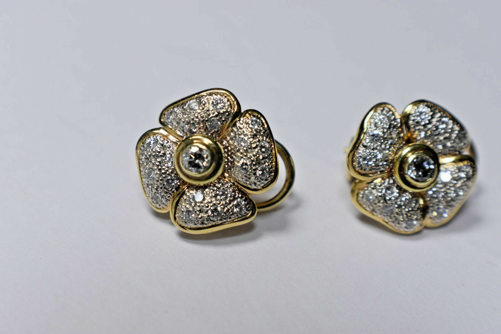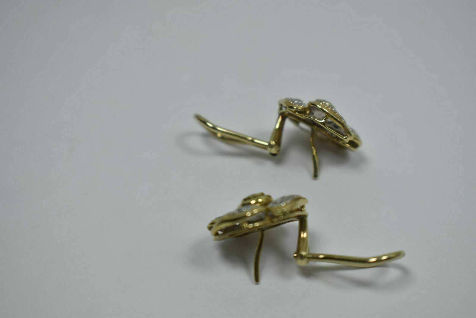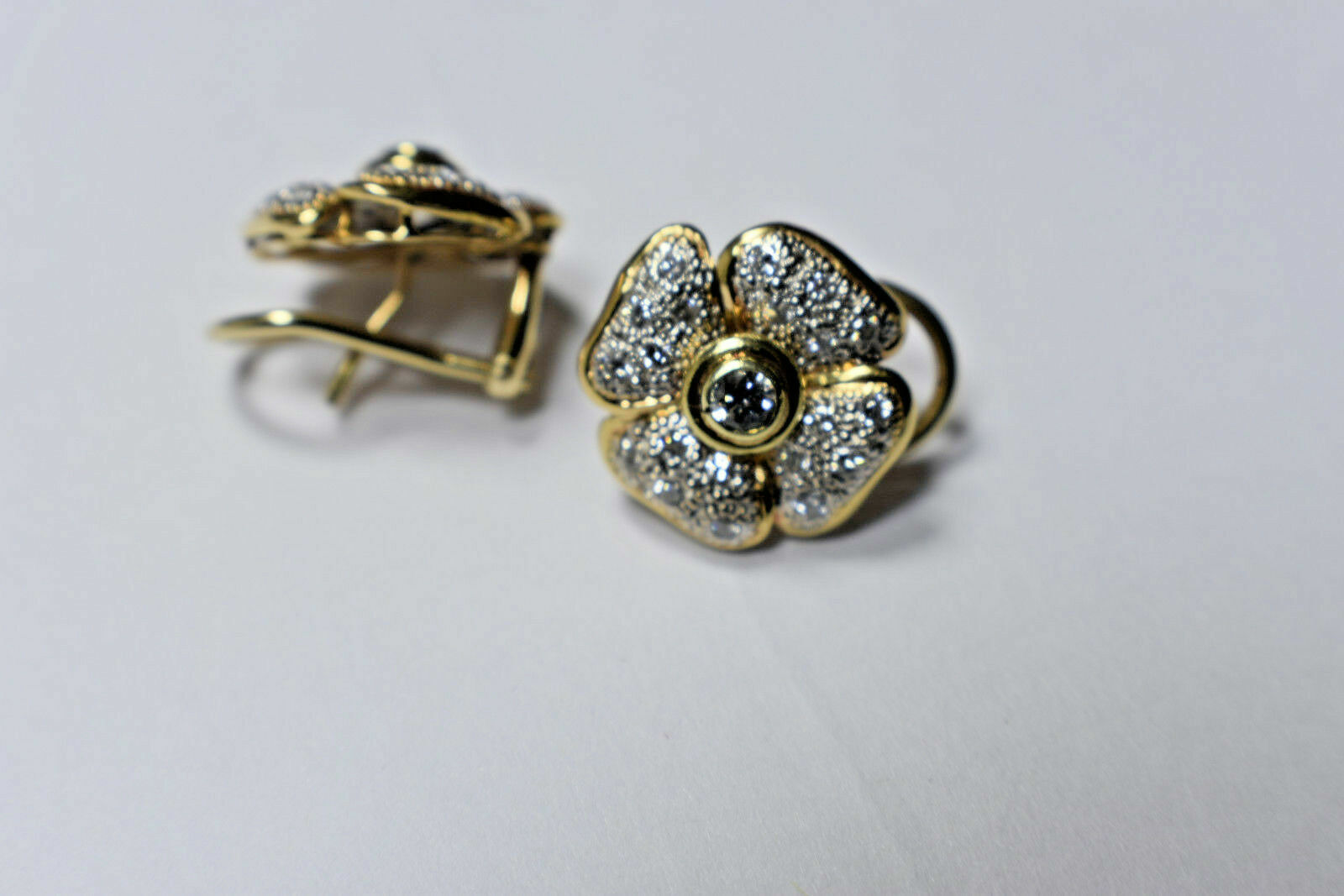 1ct Diamond 14K 2-Tone Gold 4 Leaf Clover Designer Flower Earrings 9 Gram FG VS1